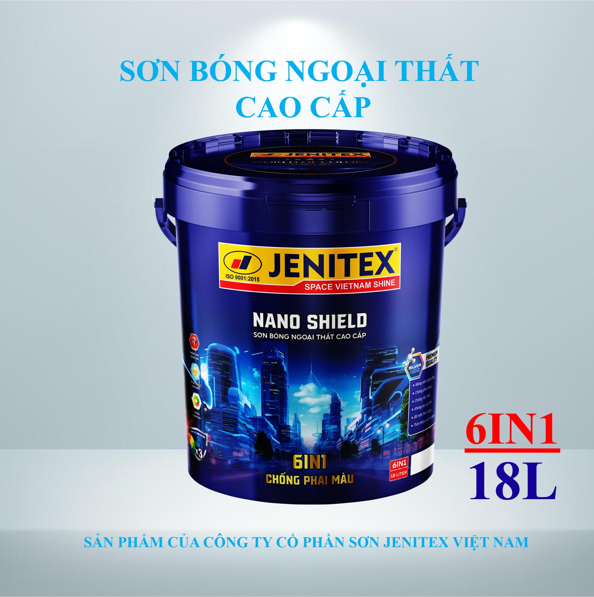 Sơn bóng ngoại thất cao cấp 18 lít - Nano Shield: Là loại sơn nước Acrylic cho màng sơn bóng lộng lẫy. được sử dụng ngoài nhà, phù hợp với khí hậu nhiệt đới gió mùa, bề mặt bóng lộng lẫy, chống nấm mốc hữu hiệu, chịu chùi rửa tối đa, chống thấm nước, dễ sử dụng đạt hiệu quả cao cho việc trang trí ngoại thất.