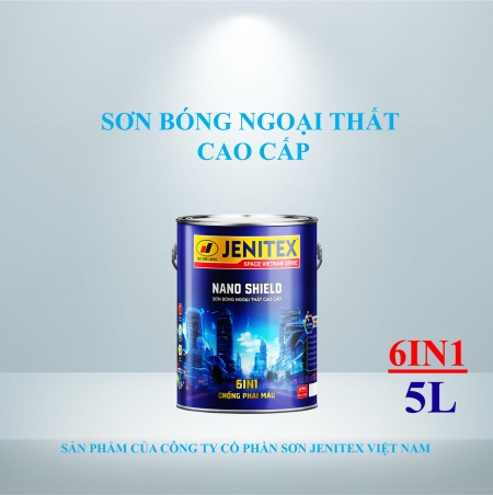 Sơn bóng ngoại thất cao cấp 5 lít - Nano Shield: Là loại sơn nước cho màng sơn bóng lộng lẫy. được sử dụng ngoài nhà, phù hợp với khí hậu nhiệt đới gió mùa, bề mặt bóng lộng lẫy, chống nấm mốc hữu hiệu, chịu chùi rửa tối đa, chống thấm nước, dễ sử dụng đạt hiệu quả cao cho việc trang trí ngoại thất.