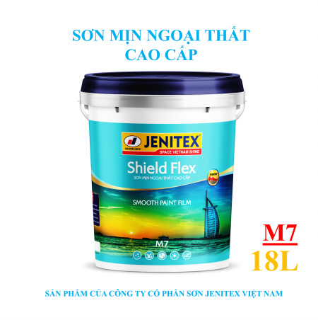 Sơn mịn ngoại thất cao cấp 18 lít - Shield Flex: Là loại sơn nước Acrylic cho màng sơn mịn. Màu sắc phong phú, tươi sáng, được sử dụng ngoài trời, phù hợp với khí hậu nhiệt đới gió mùa, dễ sử dụng phù hợp cho việc trang trí ngoại thất.